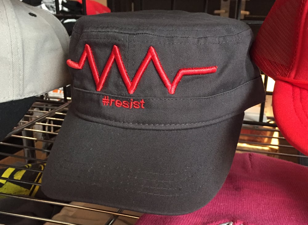 The electrical symbol for resistance, in 3D puff embroidery on a cadet-style adjustable size cap.